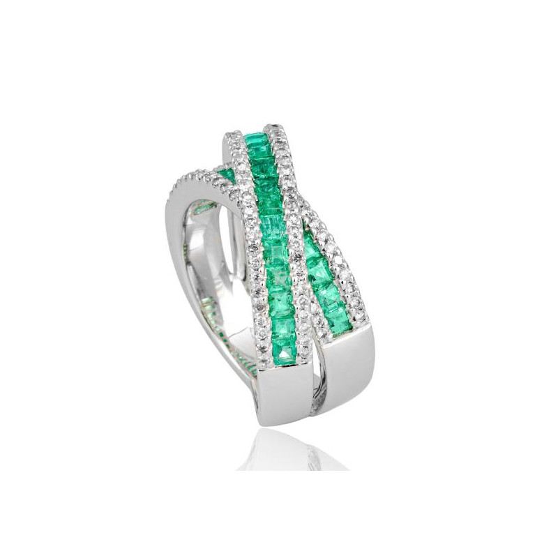 Ring - E.smaragd/dia. 0,583 Ct. H/si